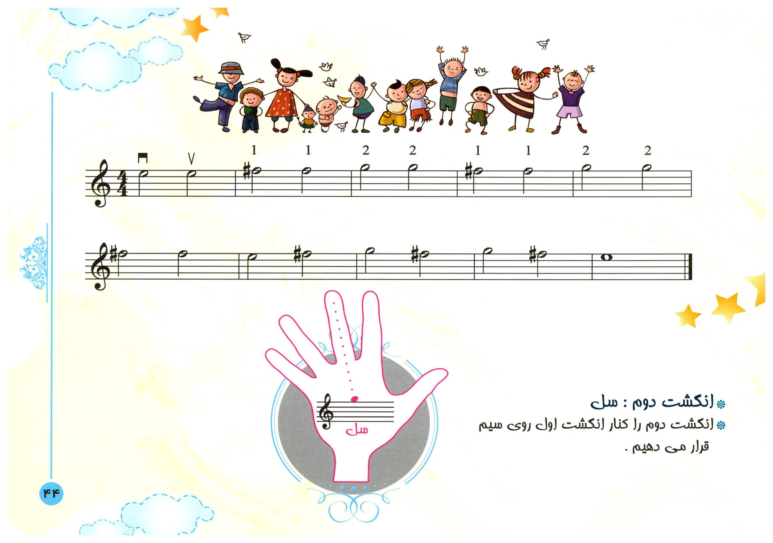 ۳۷. انگشت گذاری روی سیم دوم سل کتاب آموزش گام به گام ویولن برای کودکان جلد اول ایمان ملکی