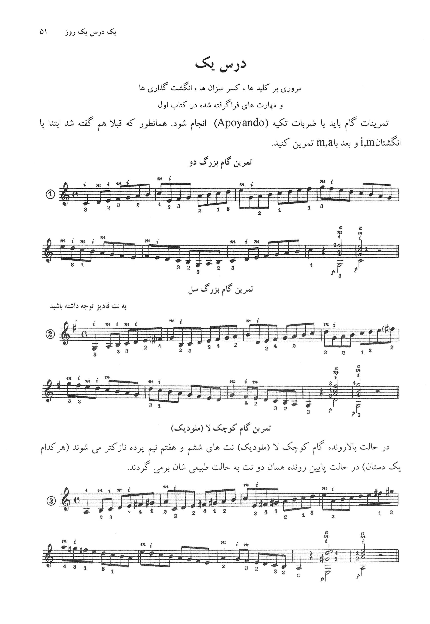 درس اول کتاب دوم آموزش گیتار کلاسیک یک روز یک درس حسین دی پیر اثر پل هر فورت