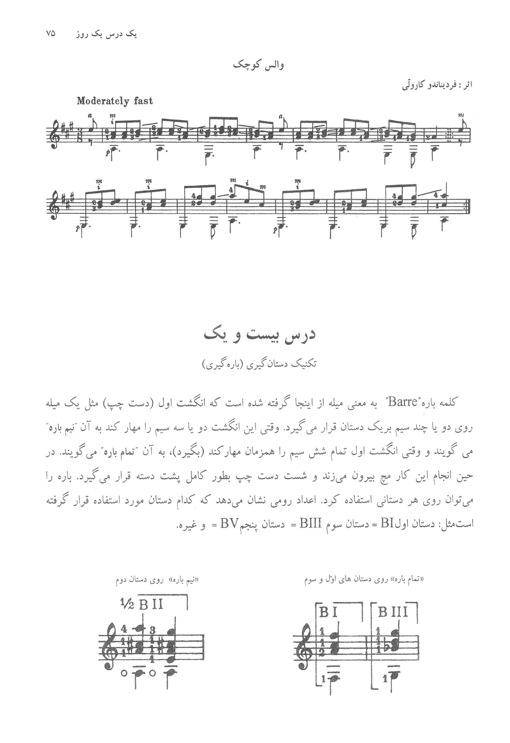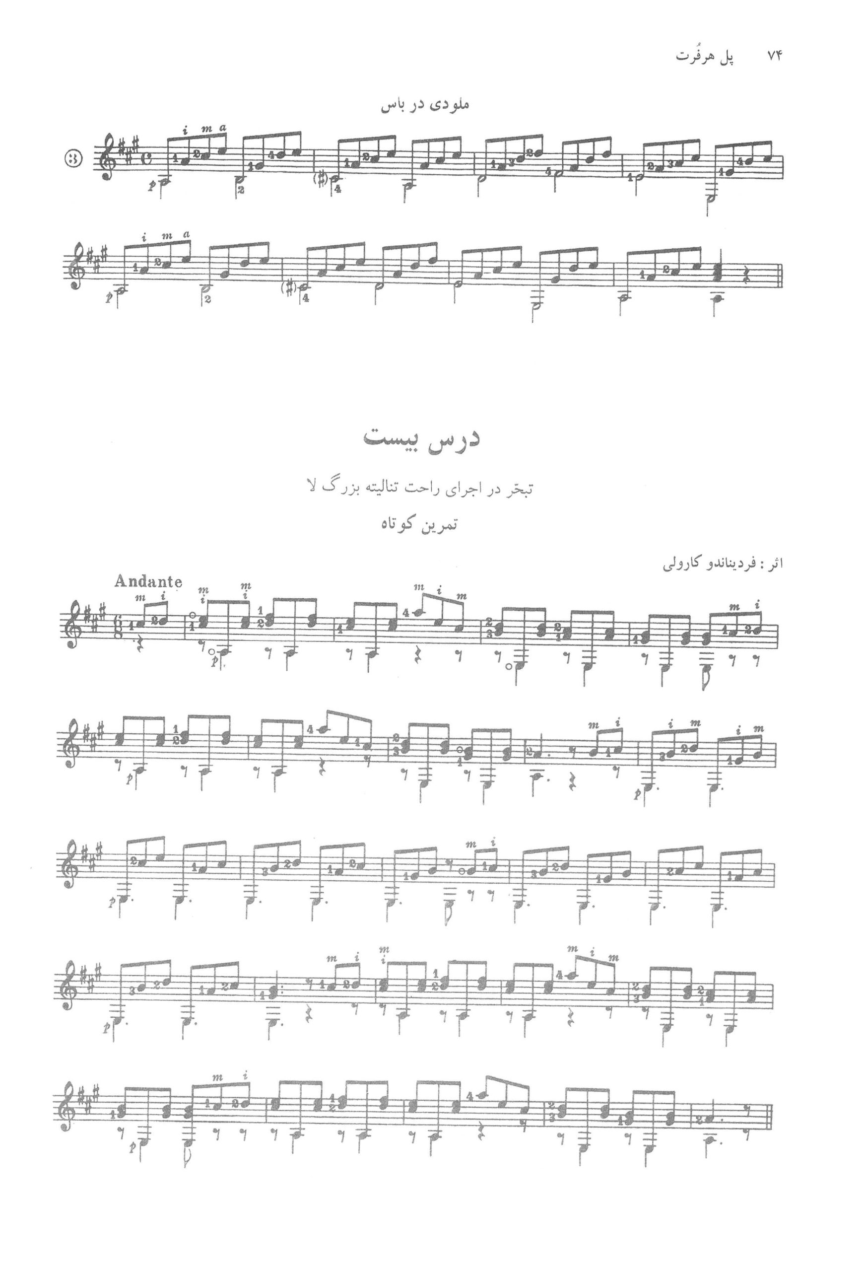 درس بیستم کتاب دوم آموزش گیتار کلاسیک یک روز یک درس حسین دی پیر اثر پل هر فورت
