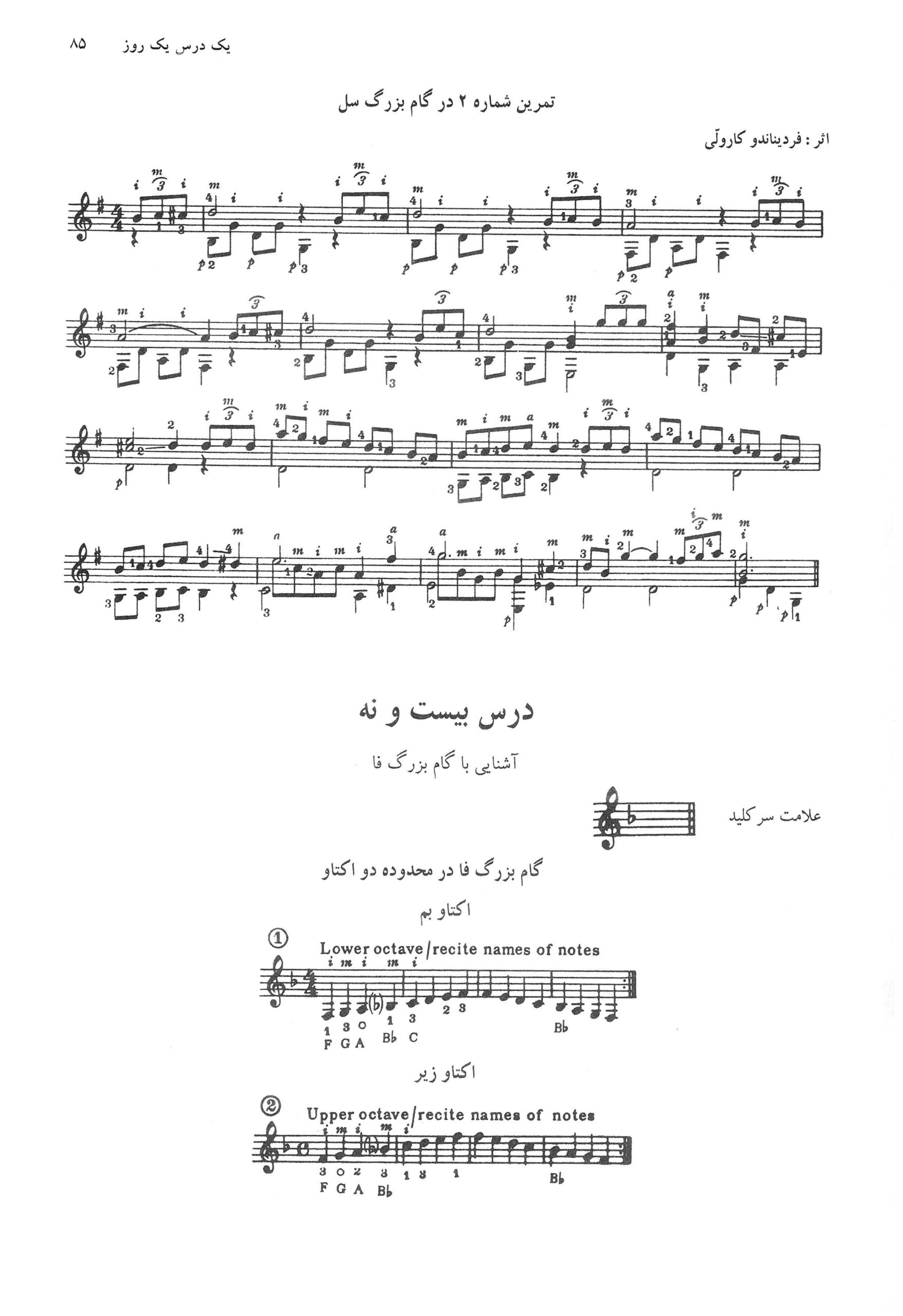 درس بیست و نهم کتاب دوم آموزش گیتار کلاسیک یک روز یک درس حسین دی پیر اثر پل هر فورت