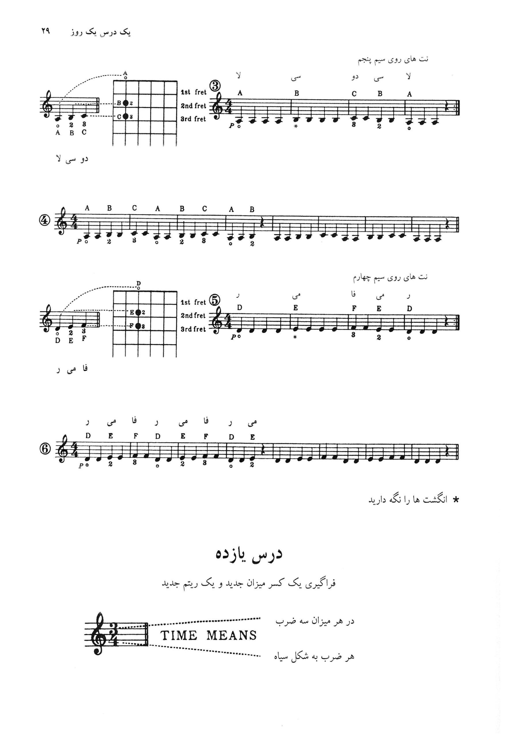 درس دهم کتاب آموزش گیتار کلاسیک یک روز یک درس حسین دی پیر اثر پل هر فورت