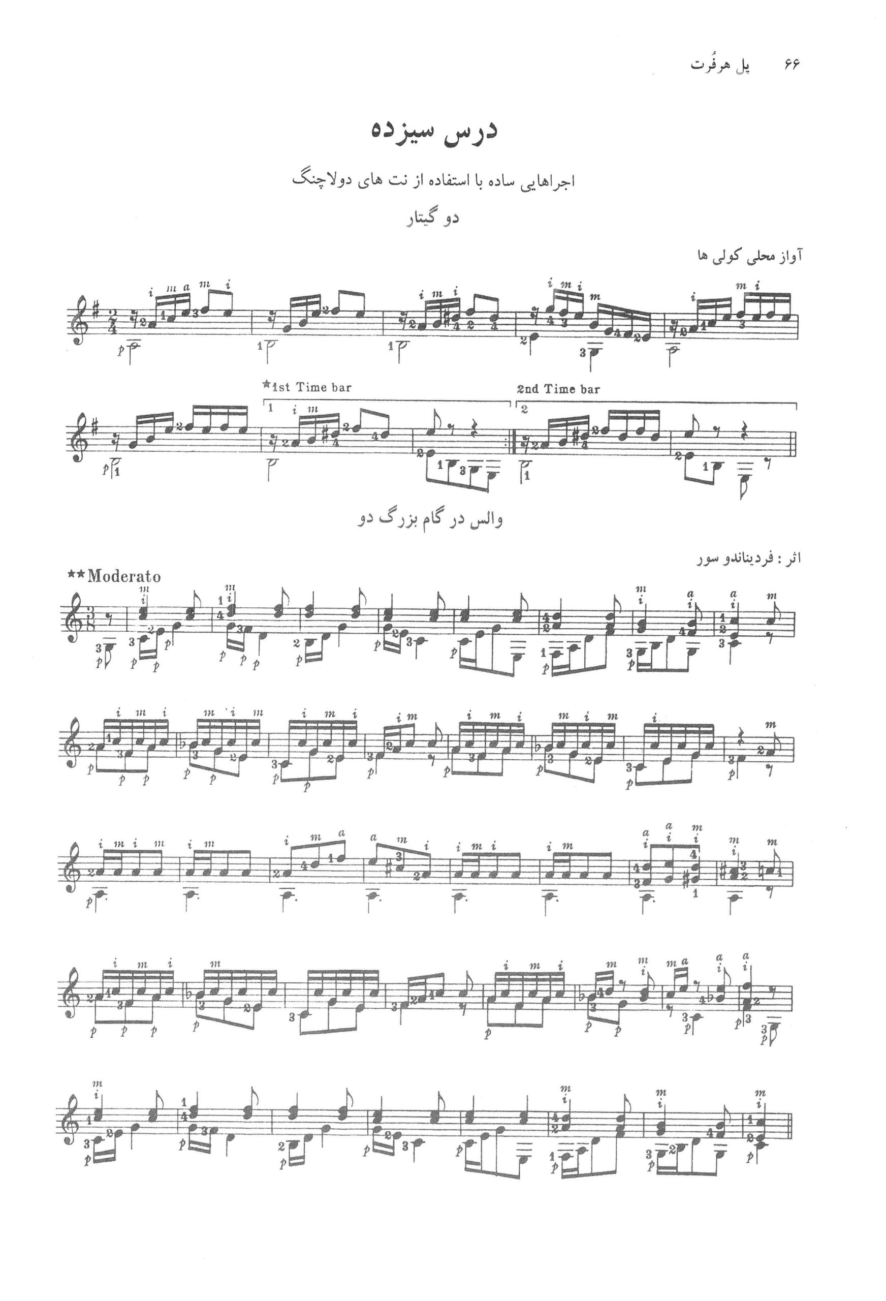 درس سیزدهم کتاب دوم آموزش گیتار کلاسیک یک روز یک درس حسین دی پیر اثر پل هر فورت