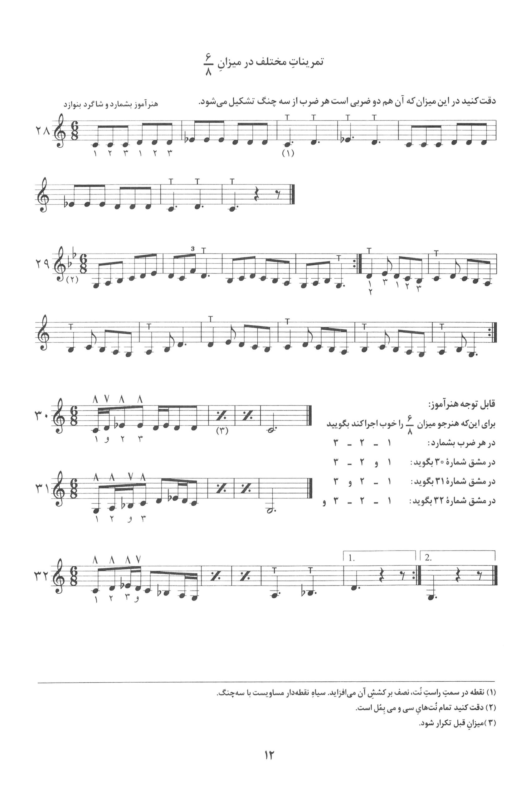 درس ۲۸ تا ۳۲. کتاب اول دستور مقدماتی تار و سه تار تالیف موسی معروفی نصرالله زرین پنجه به کوشش دکتر روح الله خالقی