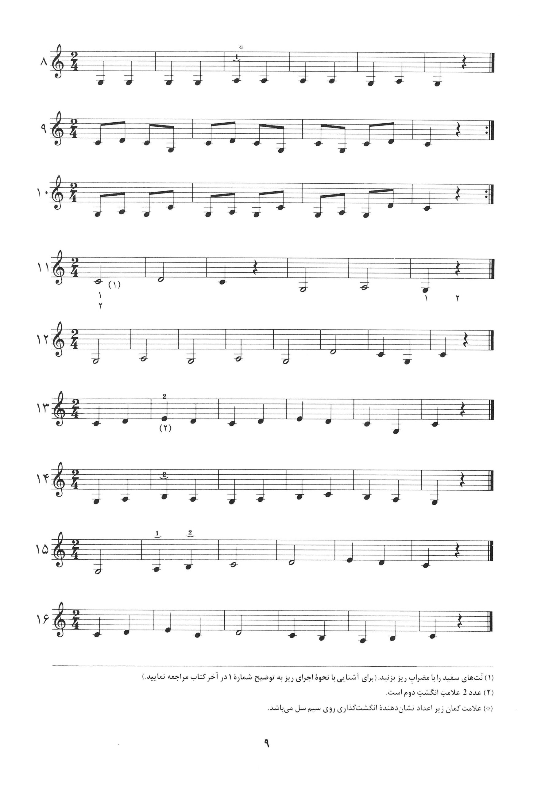 درس ۸ تا ۱۶. کتاب اول دستور مقدماتی تار و سه تار تالیف موسی معروفی نصرالله زرین پنجه به کوشش دکتر روح الله خالقی