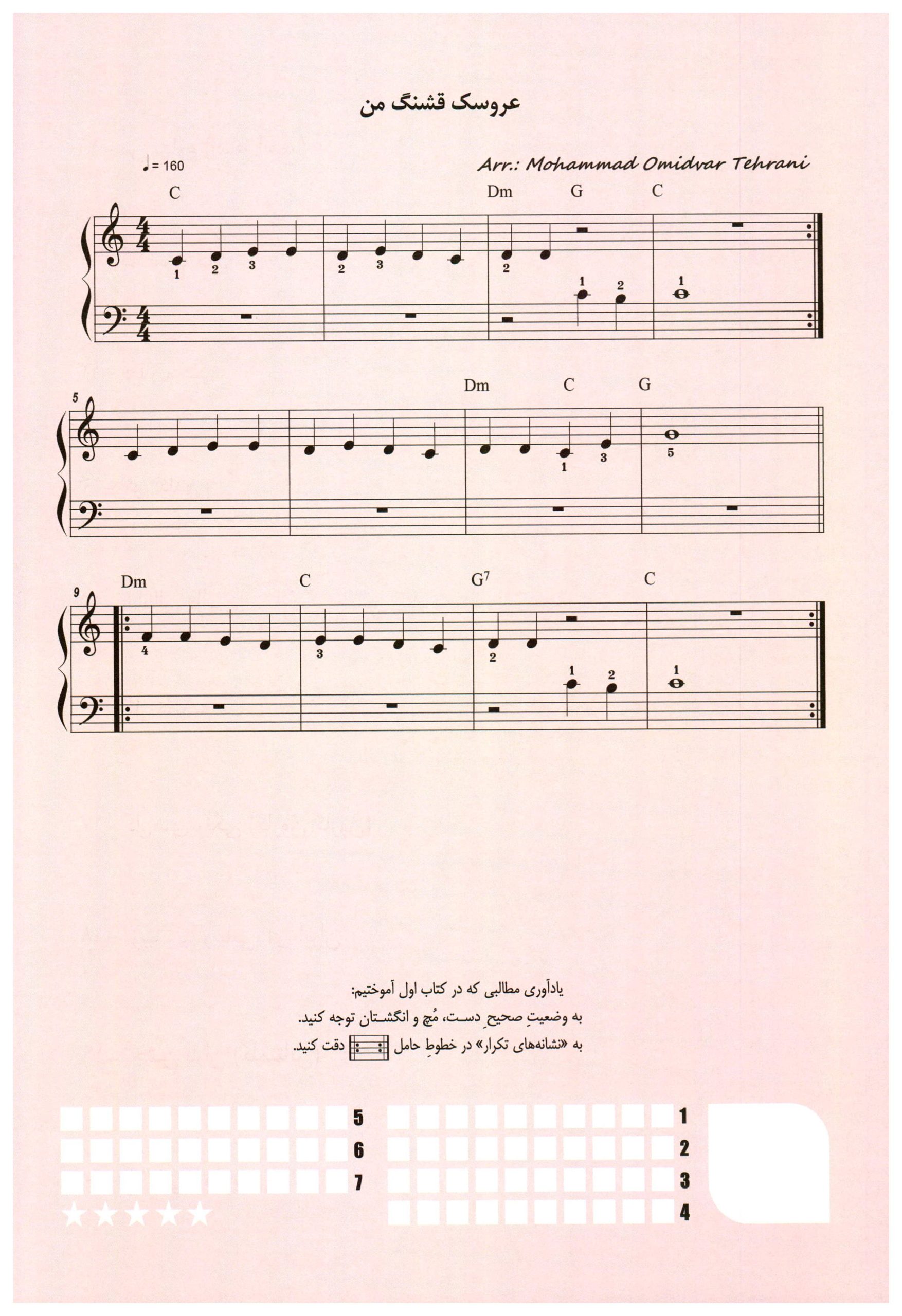 ۱. عروسک قشنگ من کتاب نواهای سحرآمیز برای نوآموزان پیانو محمد تهرانی جلد دوم
