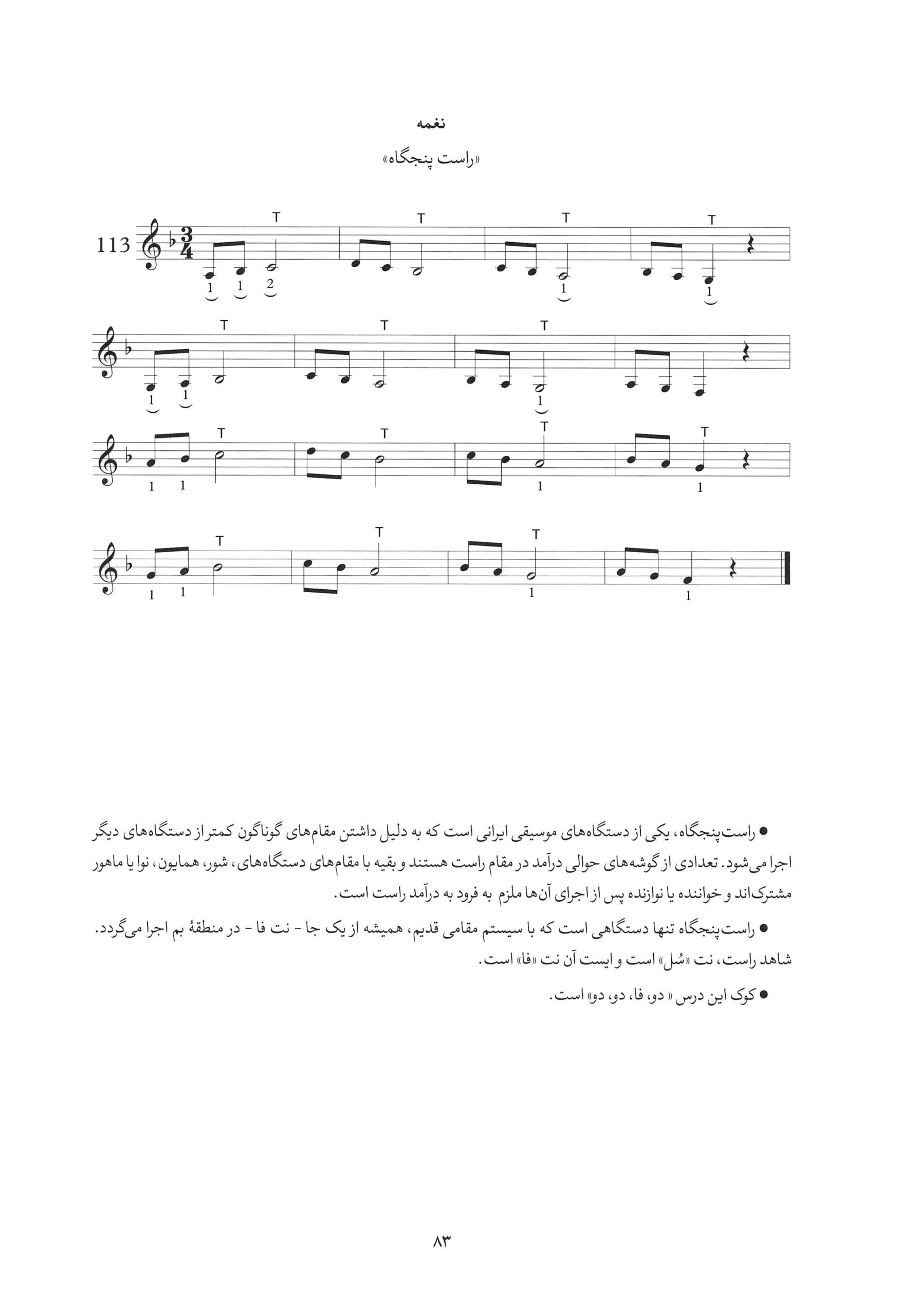 ۱۱۳. نغمه راست پنجگاه کتاب آموزش مقدماتی تار و سه تار بر اساس ردیف دستگاهی نبی احمدی
