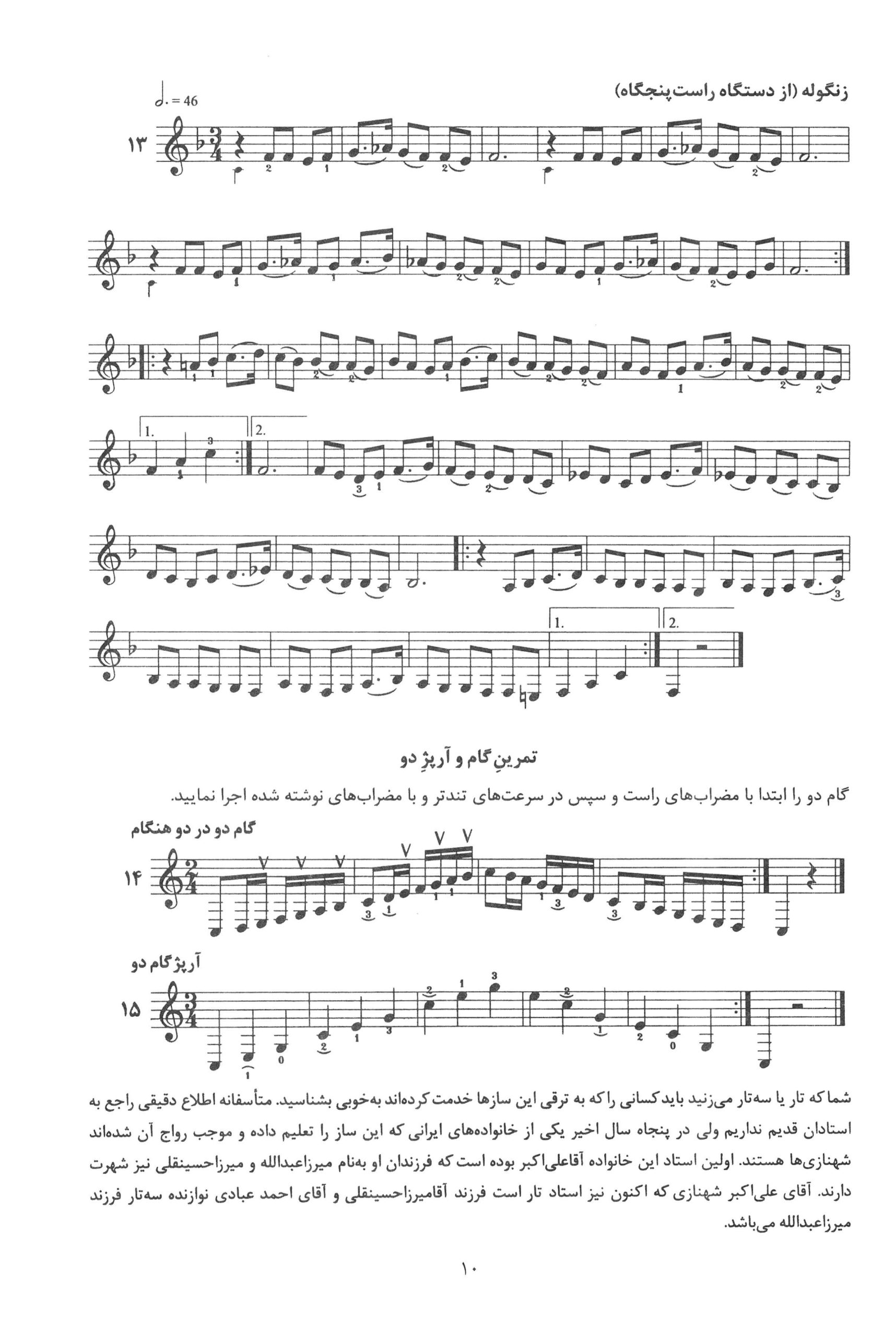 ۱۳ تا ۱۵.کتاب دوم دستور مقدماتی تار و سه تار تالیف موسی معروفی نصرالله زرین پنجه به کوشش دکتر روح الله خالقی
