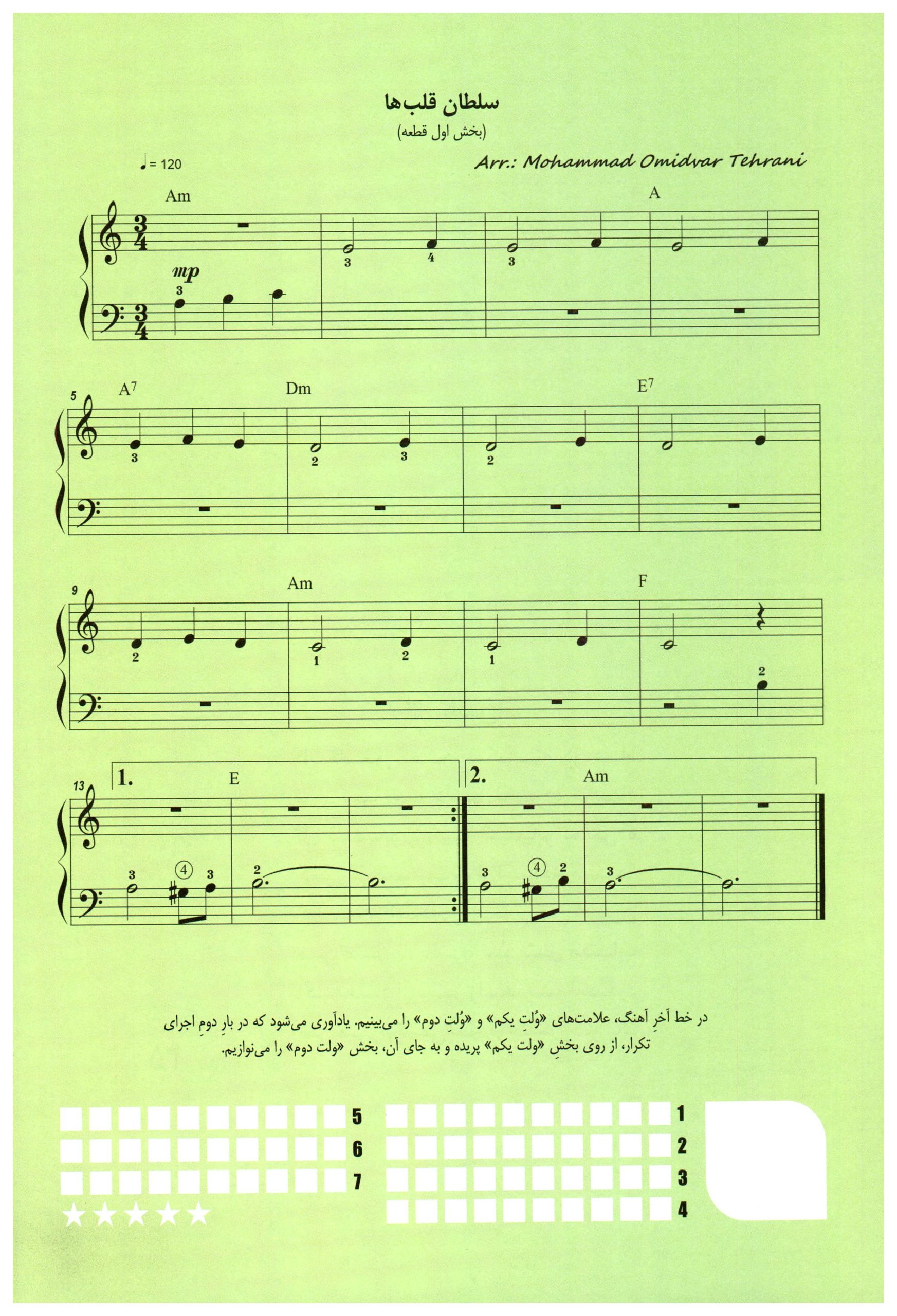 ۱۵. سلطان قلبها کتاب نواهای سحرآمیز برای نوآموزان پیانو محمد تهرانی جلد دوم