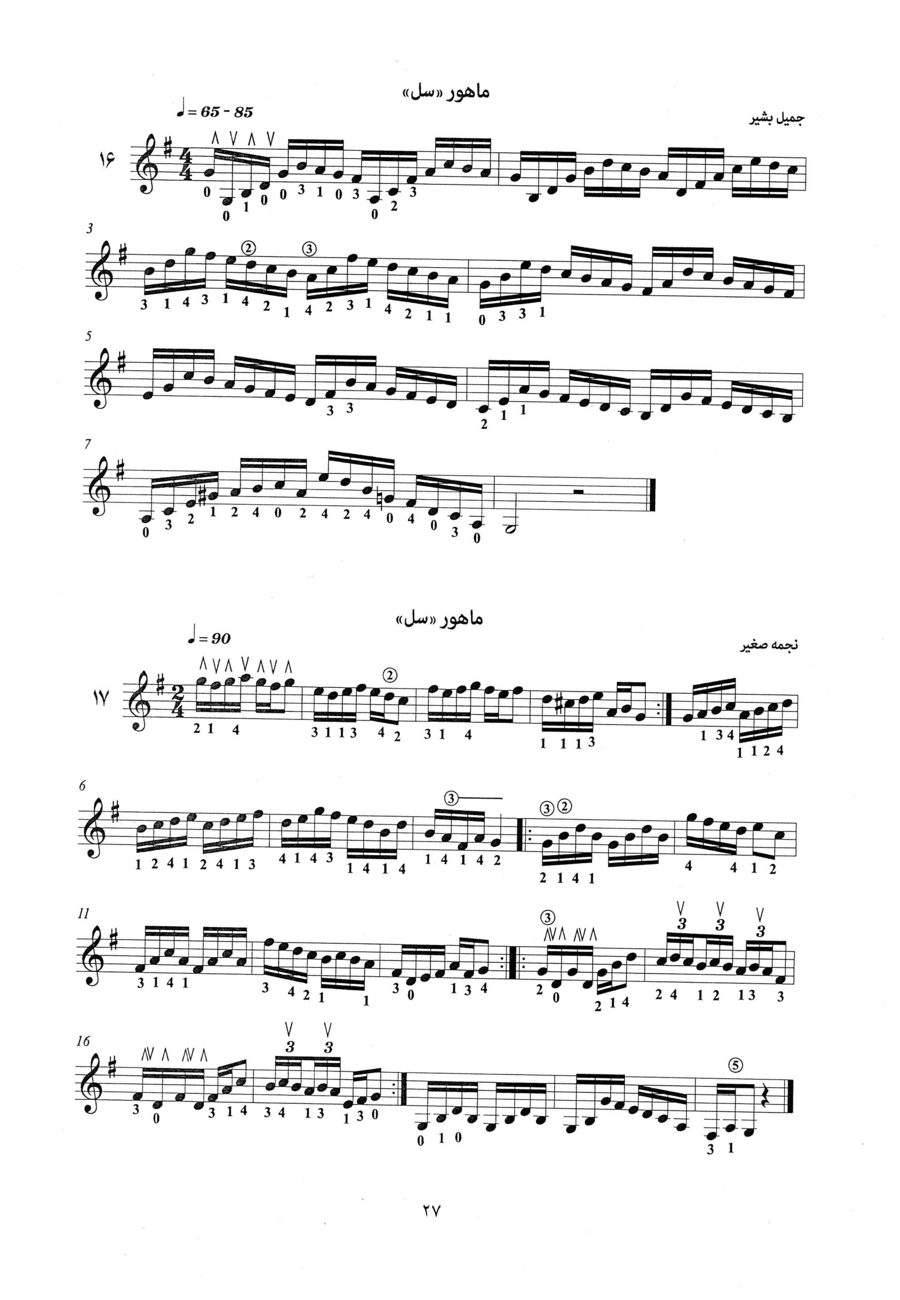 ۱۶ تا ۱۹. ماهور سل جمیل بشیر سماعی ماهور رفیق طلعت بی کتاب دوره دوم آموزش عود نجمه صغیر
