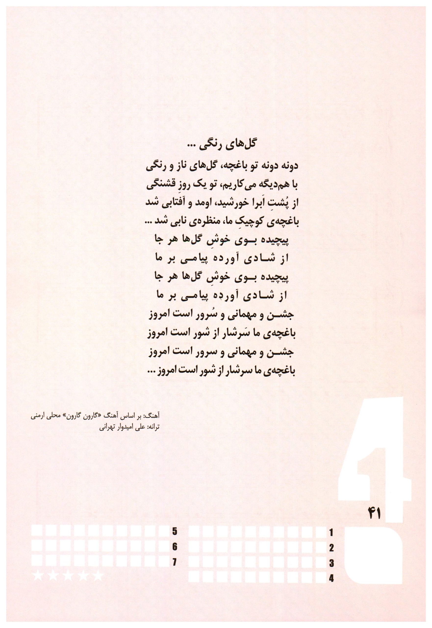 ۱۷. گل های رنگی ( گارون گارون ) کتاب نواهای سحرآمیز برای نوآموزان پیانو محمد تهرانی جلد دوم