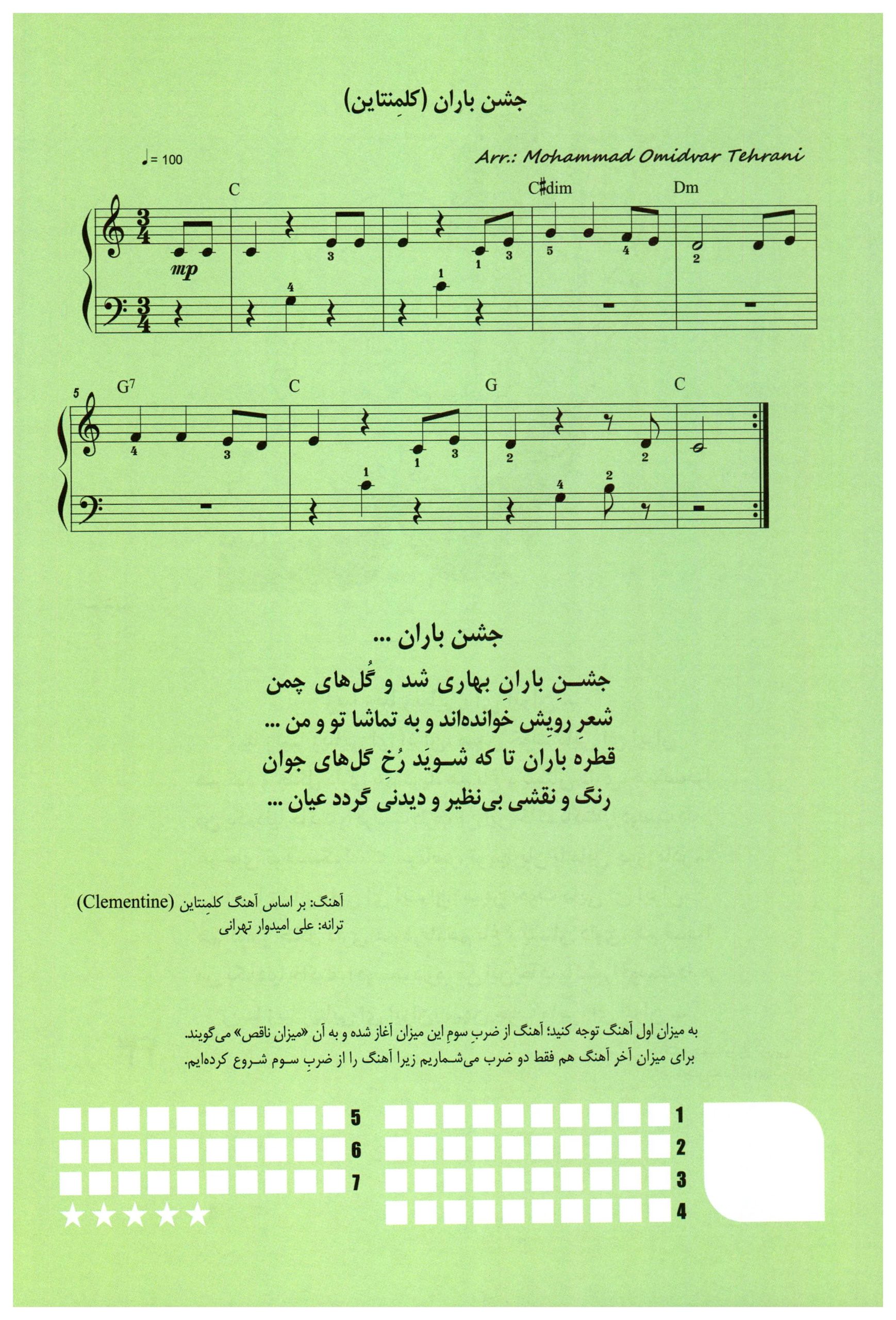 ۱۸. جشن باران ( کلمنتاین ) کتاب نواهای سحرآمیز برای نوآموزان پیانو محمد تهرانی جلد دوم