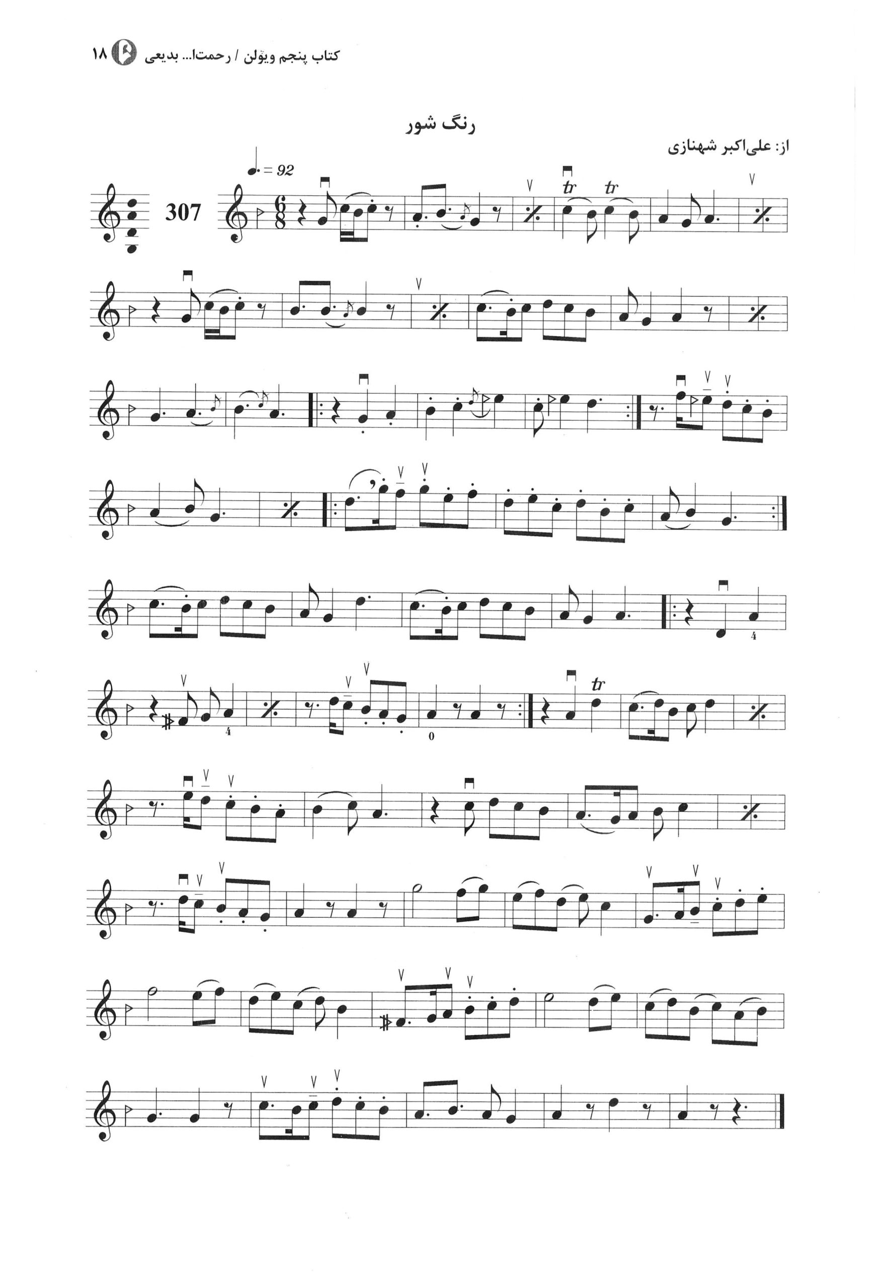 ۳۰۷. رنگ شور علی اکبر شهنازی کتاب پنجم و ششم ویولن هنرستان نوشته رحمت الله بدیعی