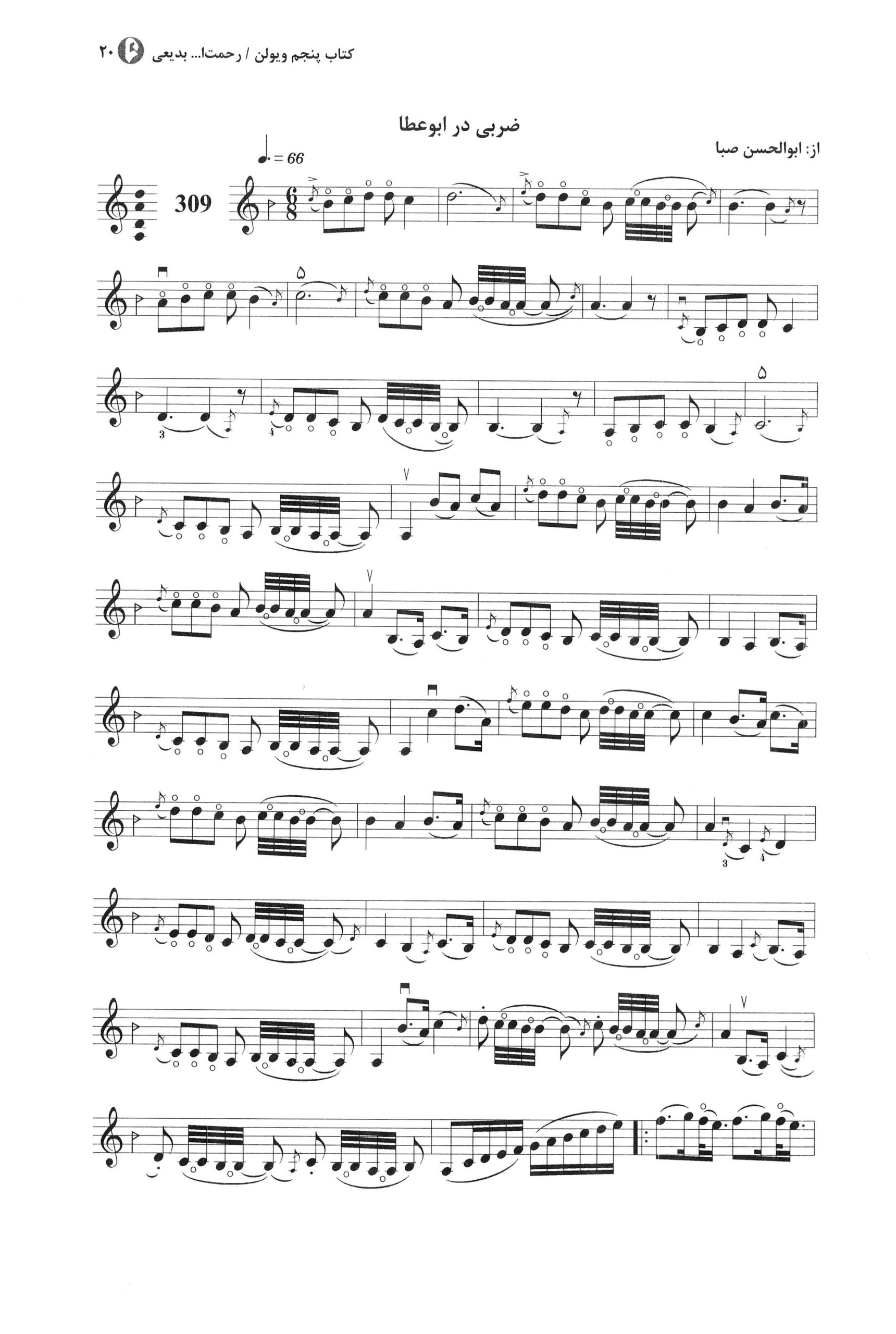 ۳۰۹. ضربی ابوعطا ابوالحسن صبا کتاب پنجم و ششم ویولن هنرستان نوشته رحمت الله بدیعی