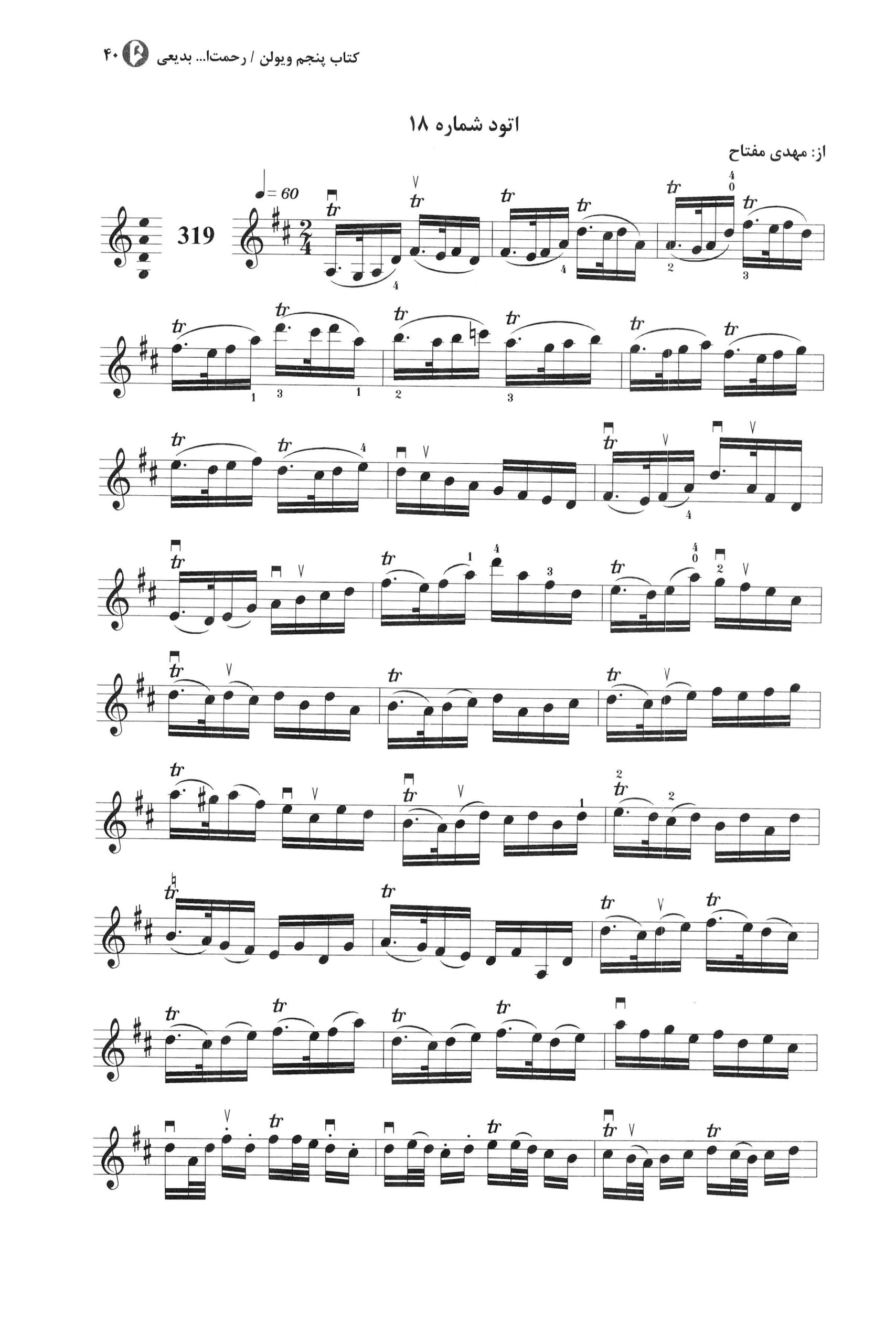 ۳۱۹. اتود شماره ۱۸ مهدی مفتاح کتاب پنجم و ششم ویولن هنرستان نوشته رحمت الله بدیعی