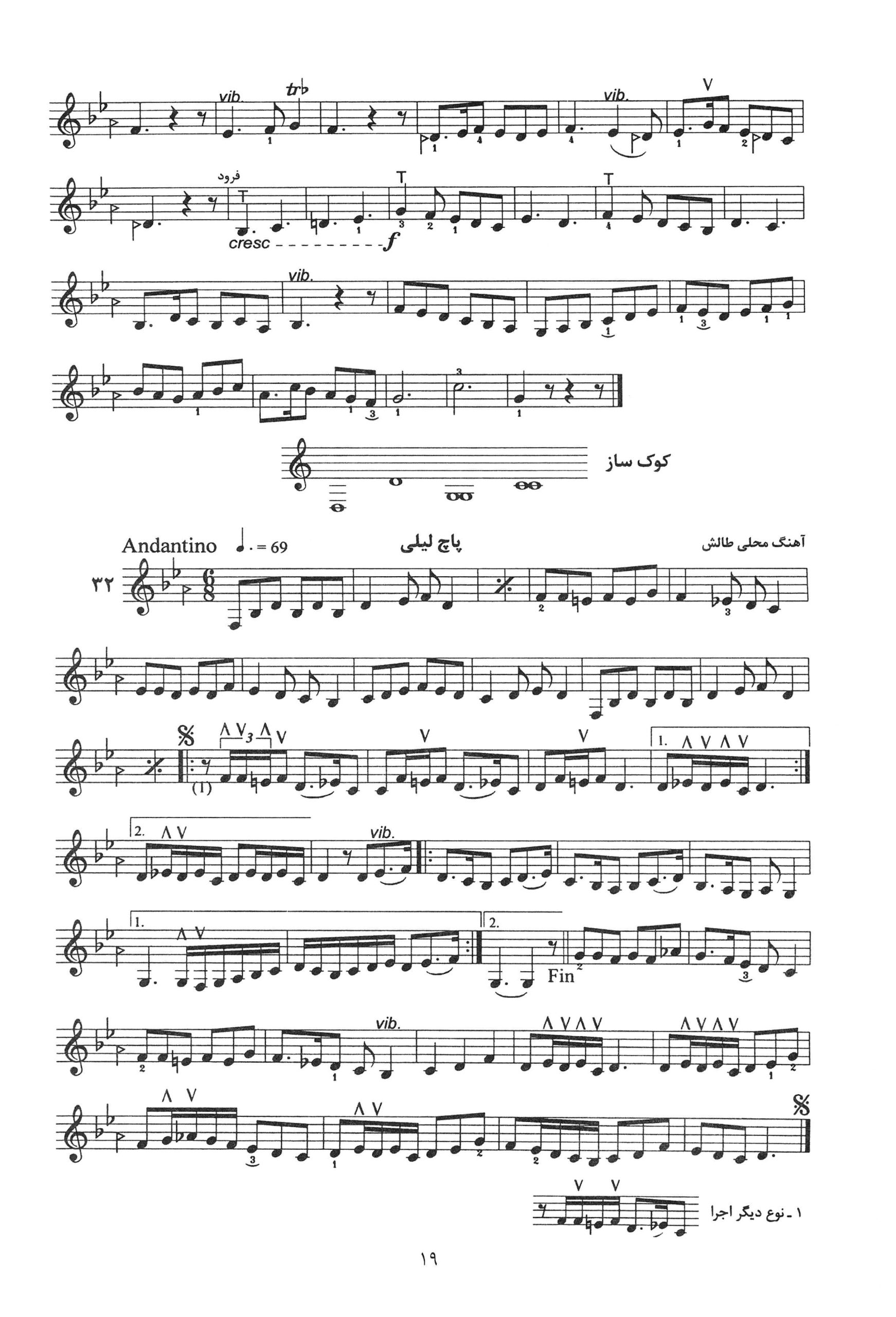 ۳۲. پاچ لیلی ۳۳. کریشیم ۳۴. آهنگ شیرازی کتاب دوم دستور مقدماتی تار و سه تار تالیف موسی معروفی نصرالله زرین پنجه به کوشش دکتر روح الله خالقی