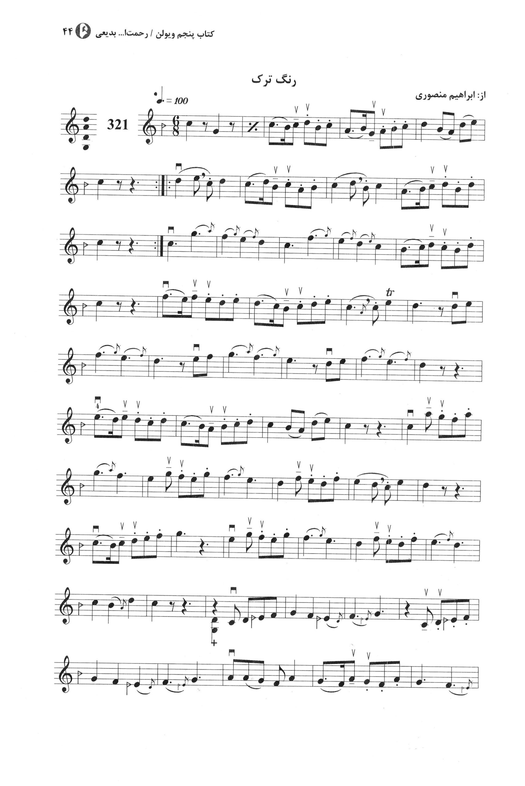 ۳۲۱. رنگ ترک ابراهیم منصوری کتاب پنجم و ششم ویولن هنرستان نوشته رحمت الله بدیعی