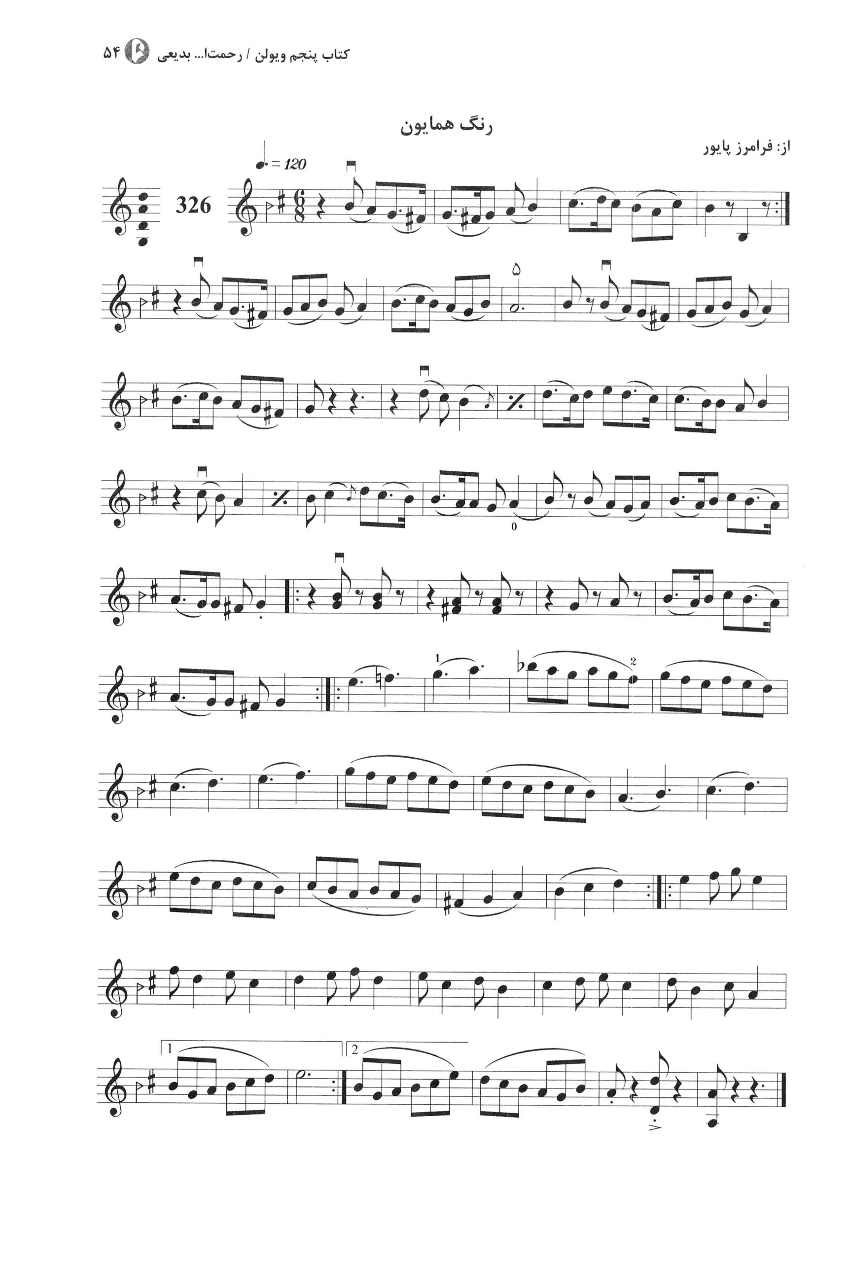 کتاب پنجم ویولون برای هنرستان رحمت الله بدیعی