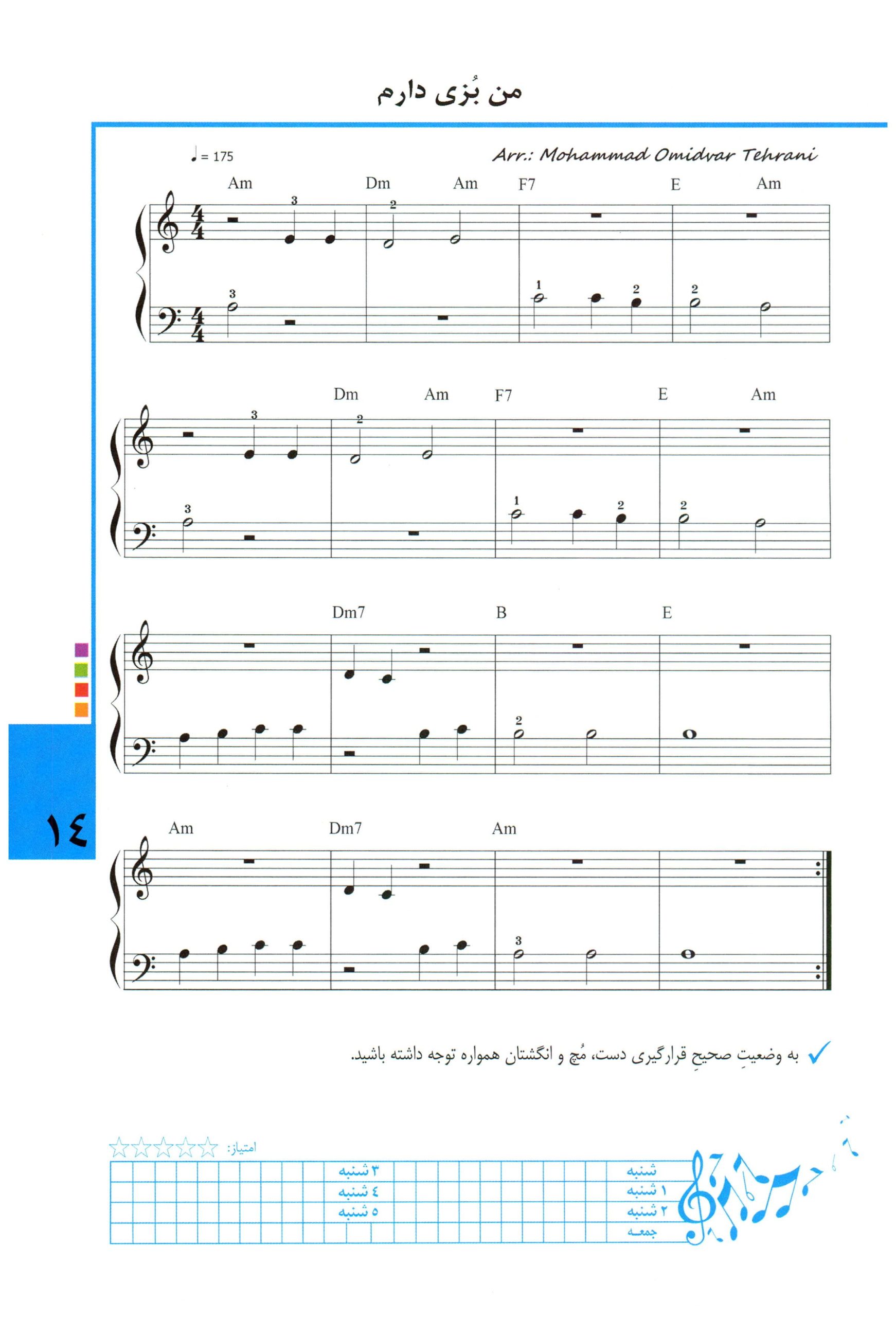 ۴. من بزی دارم کتاب نواهای سحرآمیز برای نوآموزان پیانو محمد تهرانی