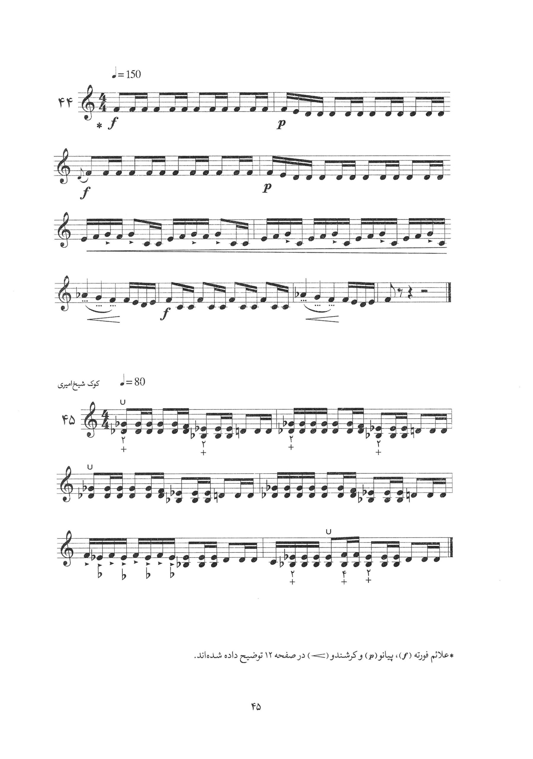 ۴۴ تا ۴۵. کتاب هفتاد و دو مشق تنبور دوره مقدماتی جلد دوم