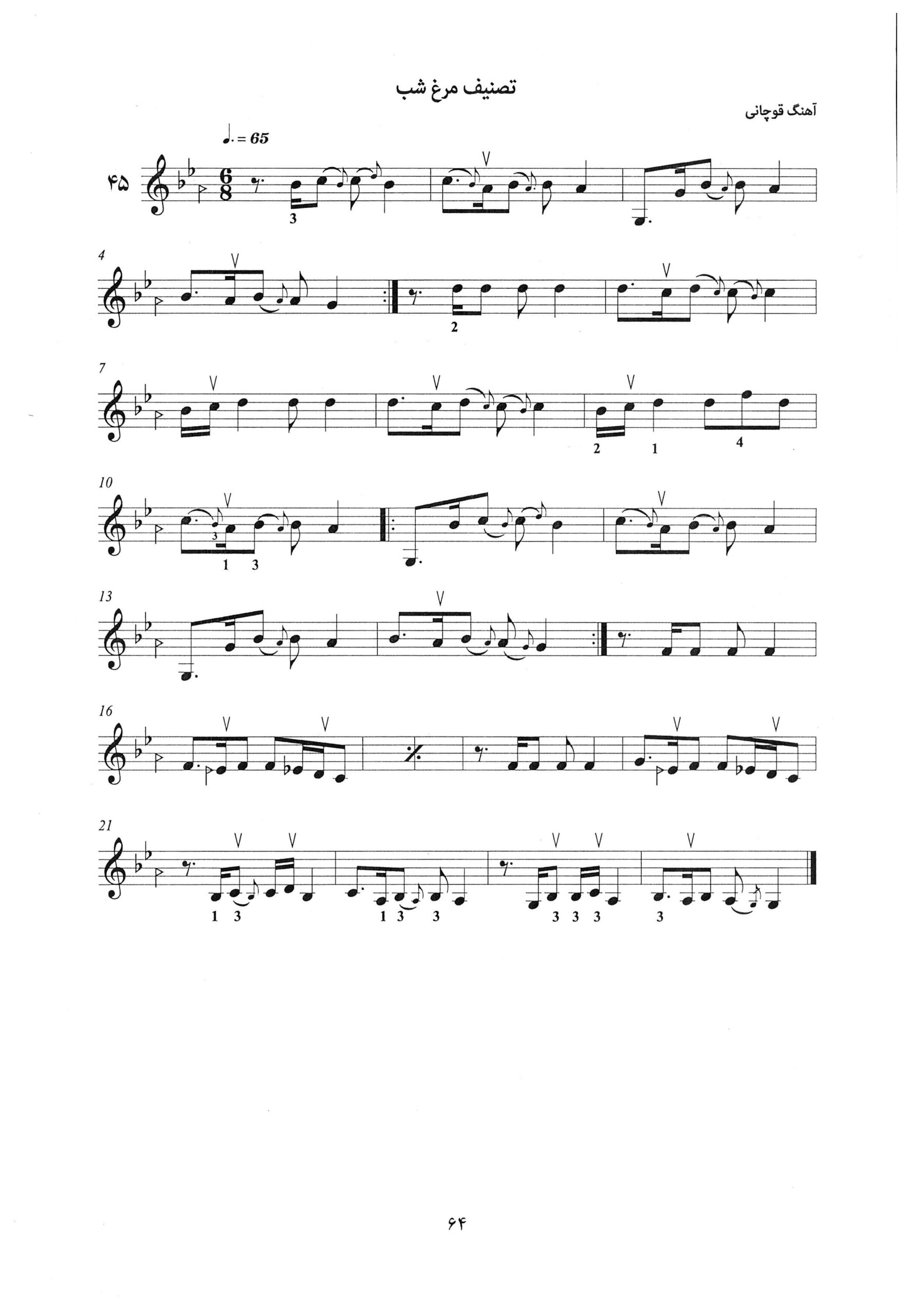 ۴۵ تا ۴۷. تصنیف مرغ شب آهنگ قوچانی شور ۲ پوزیسیون ۳ و ۴ کتاب دوره دوم آموزش عود نجمه صغیر
