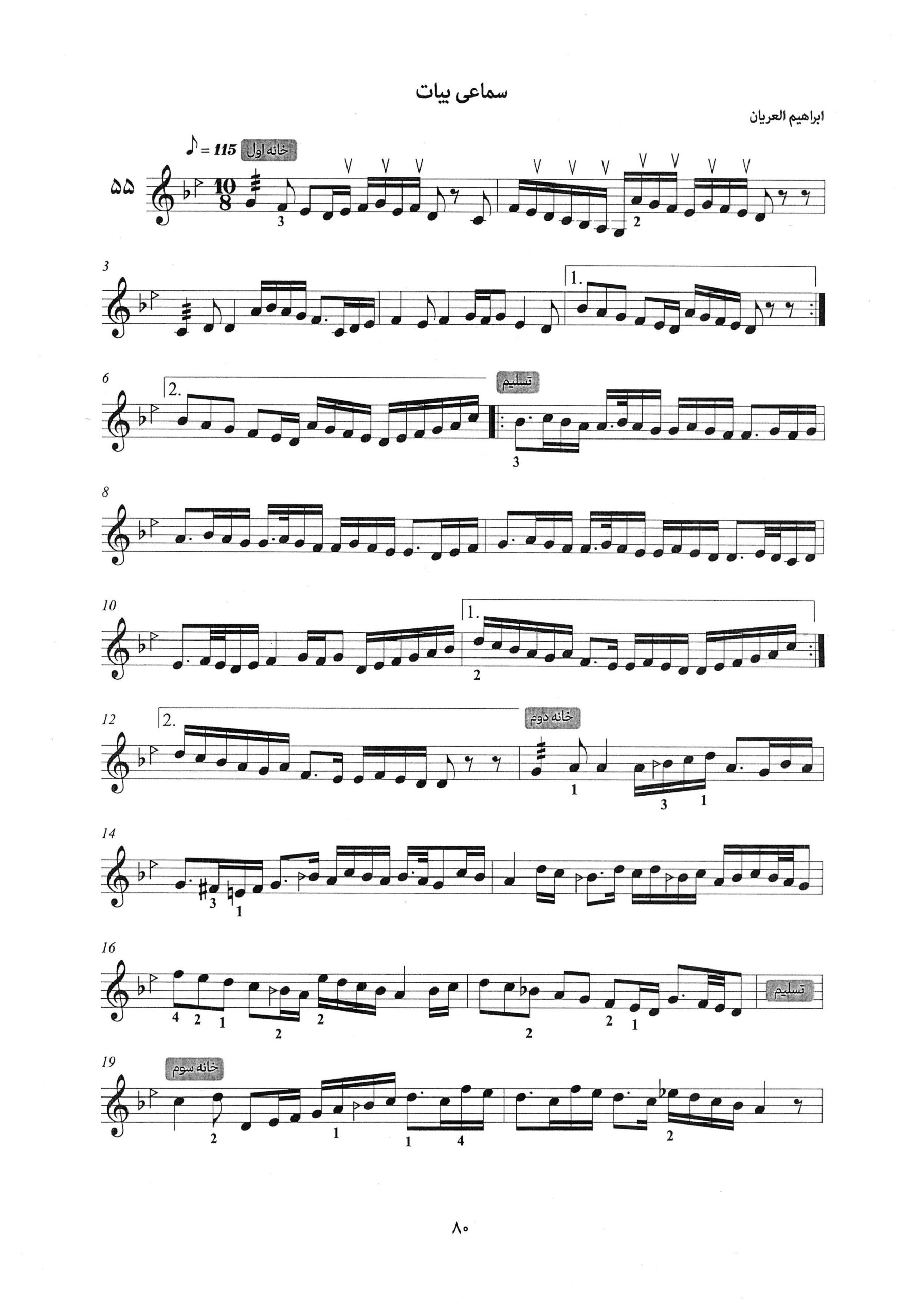 ۵۵ و ۵۶. سماعی بیات سماعی صبا کتاب دوره دوم آموزش عود نجمه صغیر