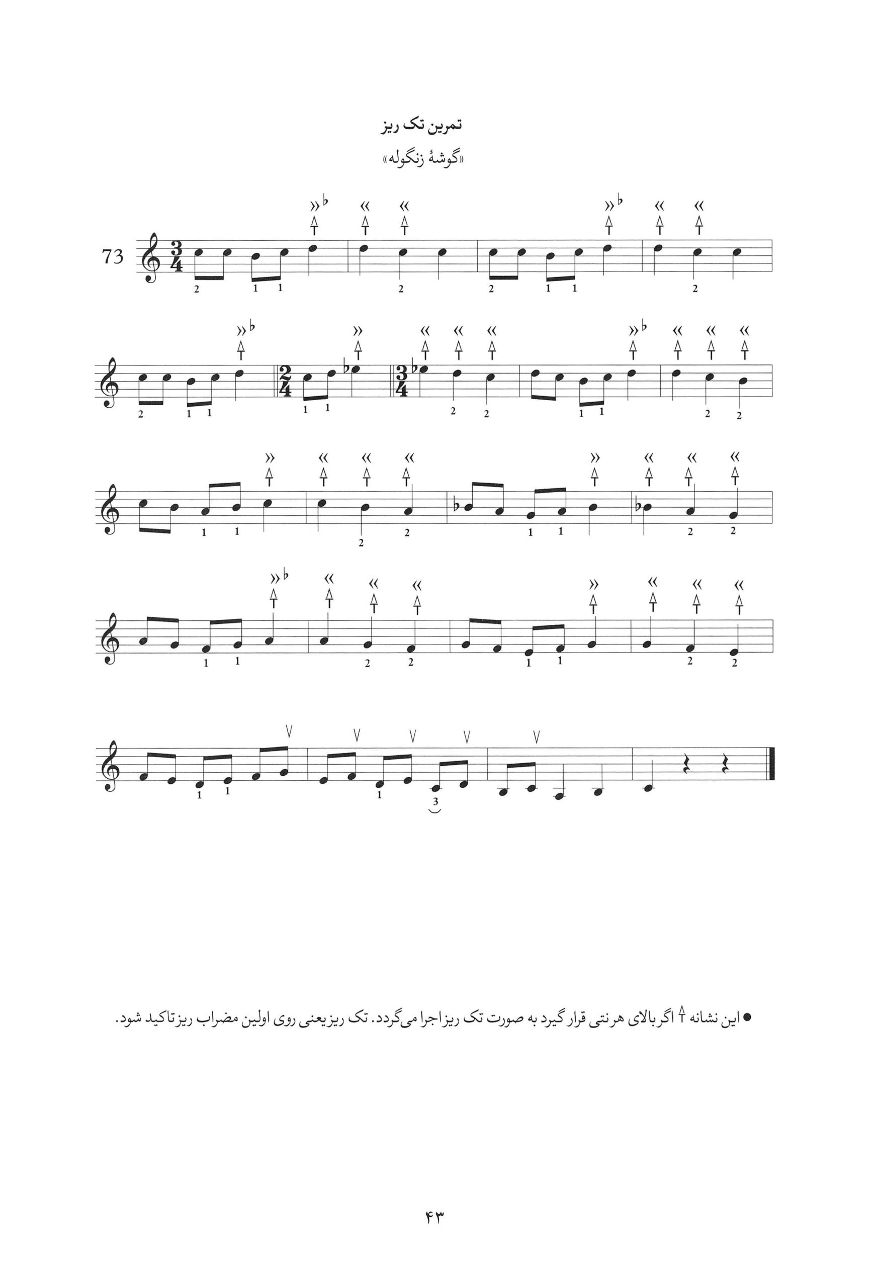 ۷۳. تمرین تک ریز کتاب آموزش مقدماتی تار و سه تار بر اساس ردیف دستگاهی نبی احمدی