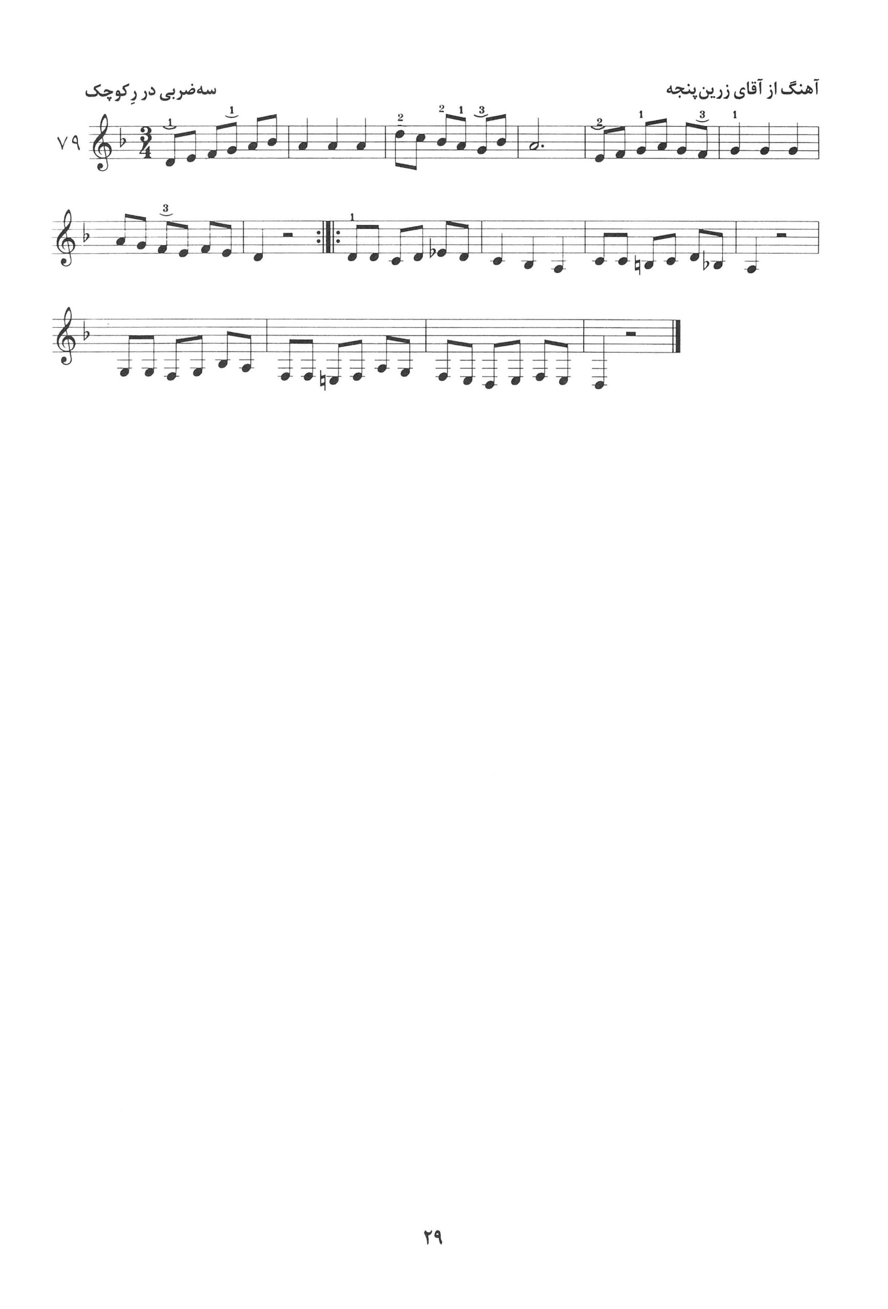 ۷۹. کتاب اول دستور مقدماتی تار و سه تار تالیف موسی معروفی نصرالله زرین پنجه به کوشش دکتر روح الله خالقی