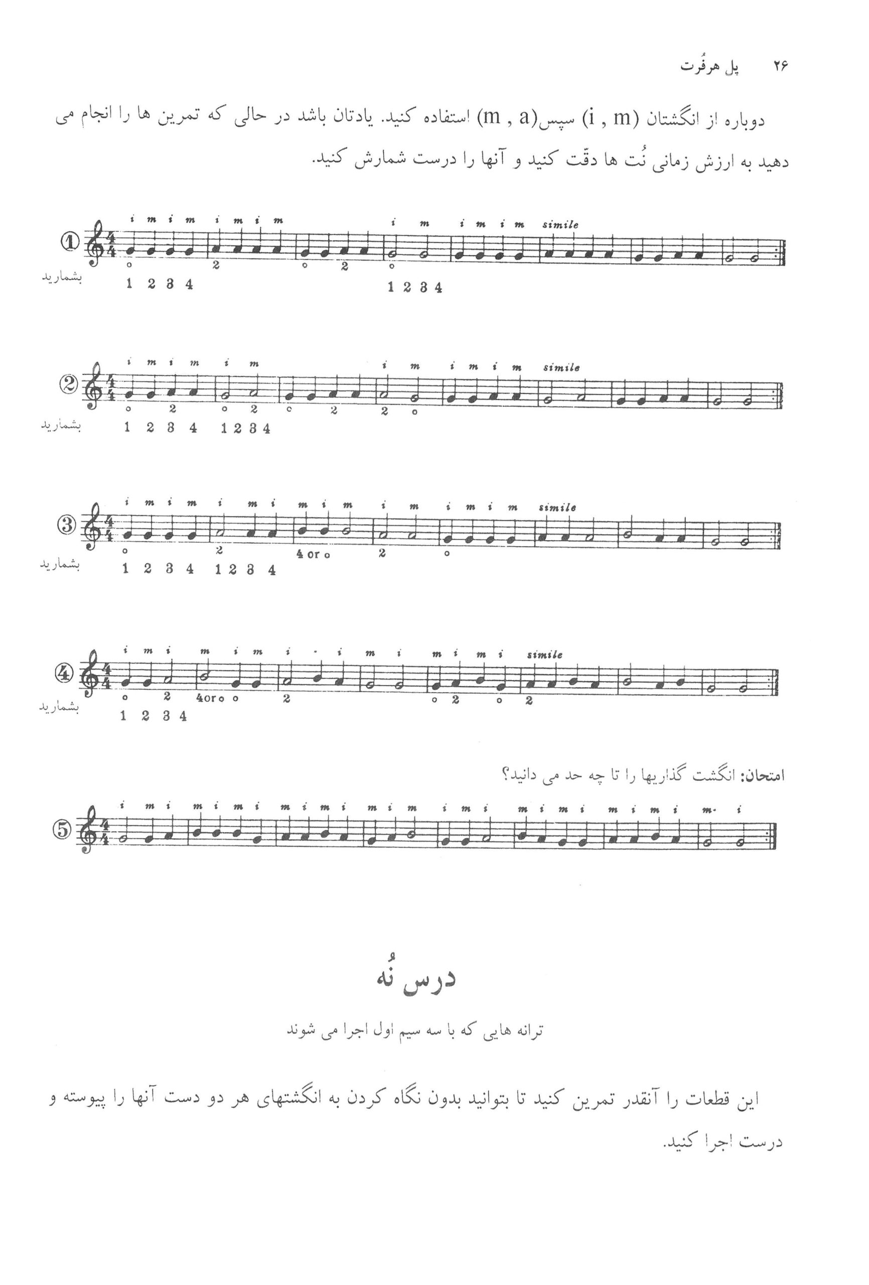 درس هشتم کتاب آموزش گیتار کلاسیک یک روز یک درس حسین دی پیر اثر پل هر فورت