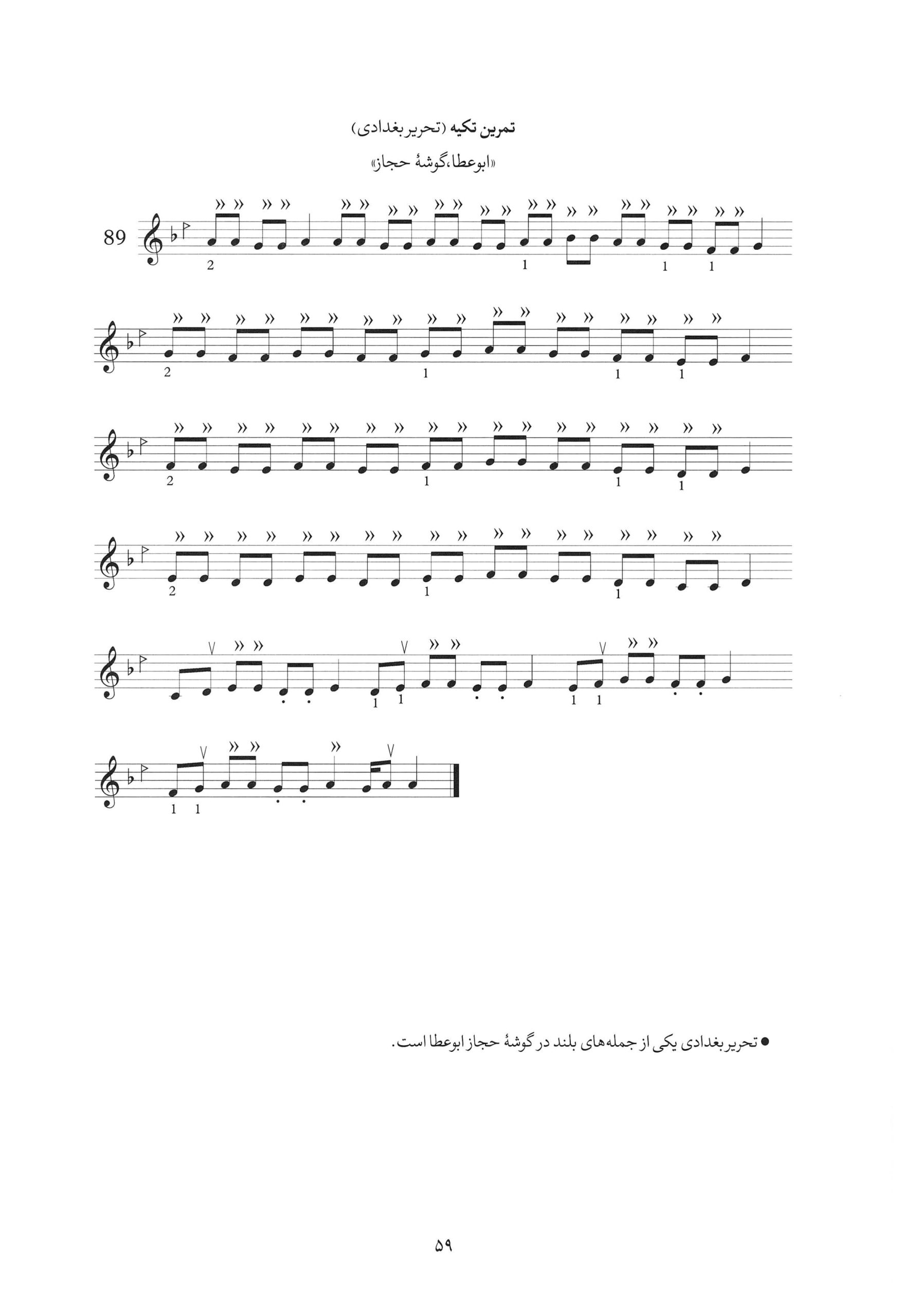 ۸۹. تمرین تکیه تحریر بغدادی کتاب آموزش مقدماتی تار و سه تار بر اساس ردیف دستگاهی نبی احمدی