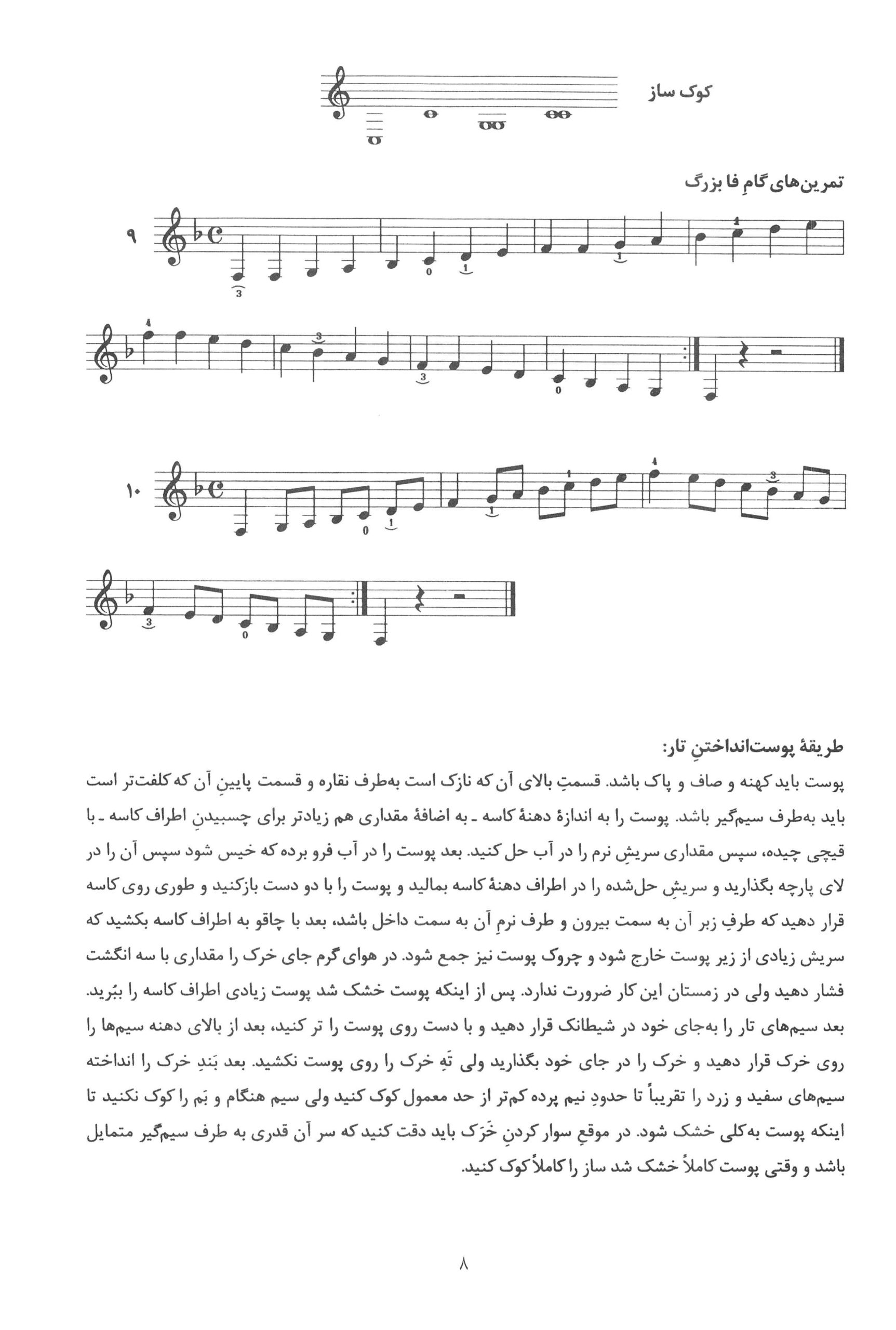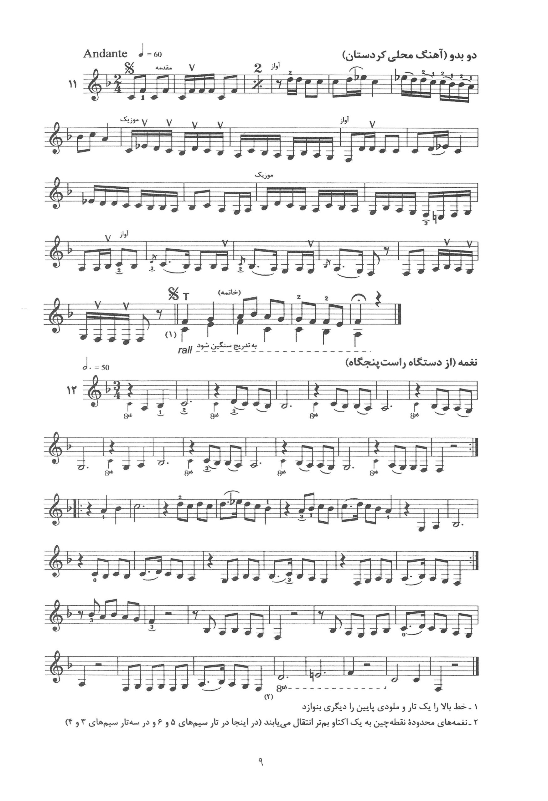 ۹ تا۱۲. کتاب دوم دستور مقدماتی تار و سه تار تالیف موسی معروفی نصرالله زرین پنجه به کوشش دکتر روح الله خالقی