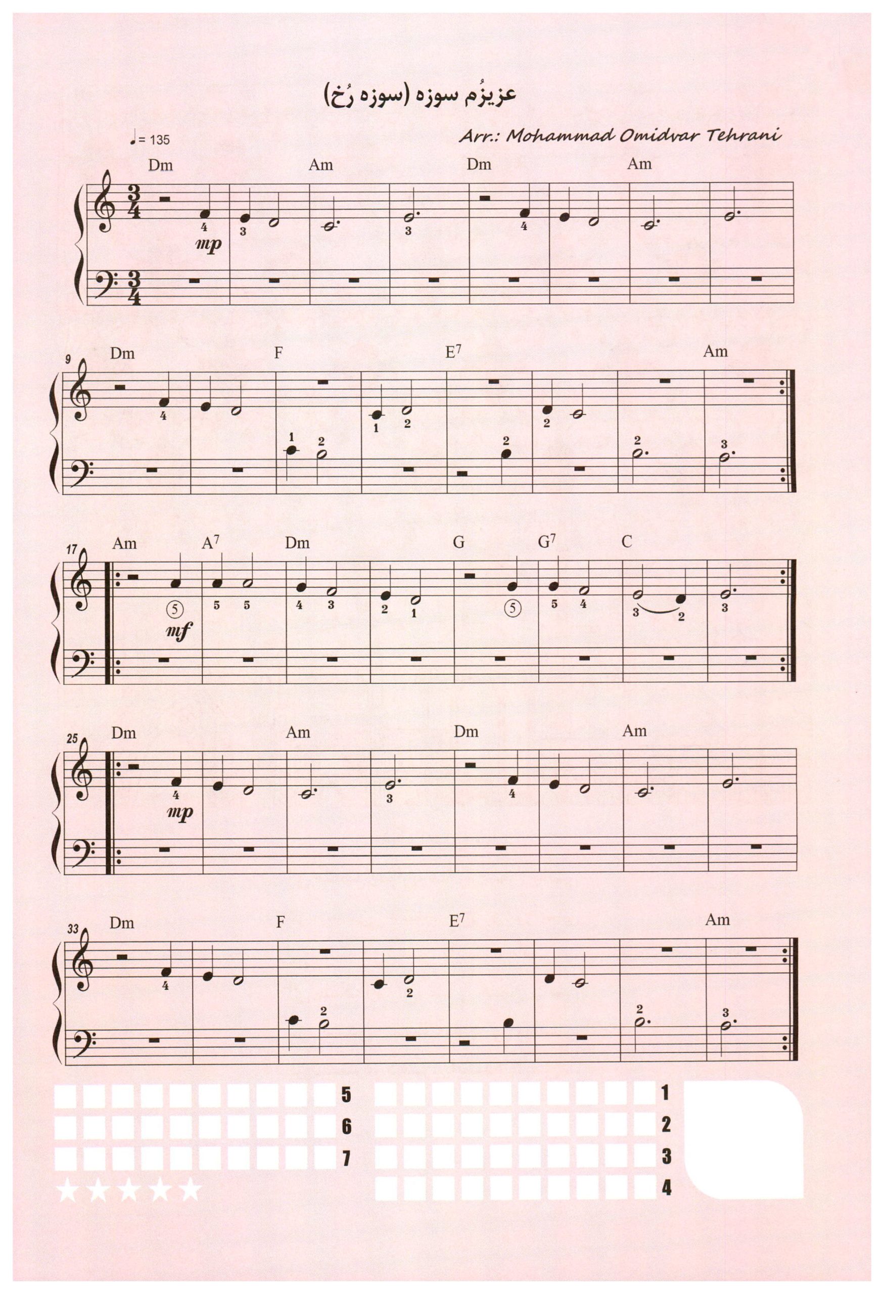 ۹. عزیزم سوزه کتاب نواهای سحرآمیز برای نوآموزان پیانو محمد تهرانی جلد دوم