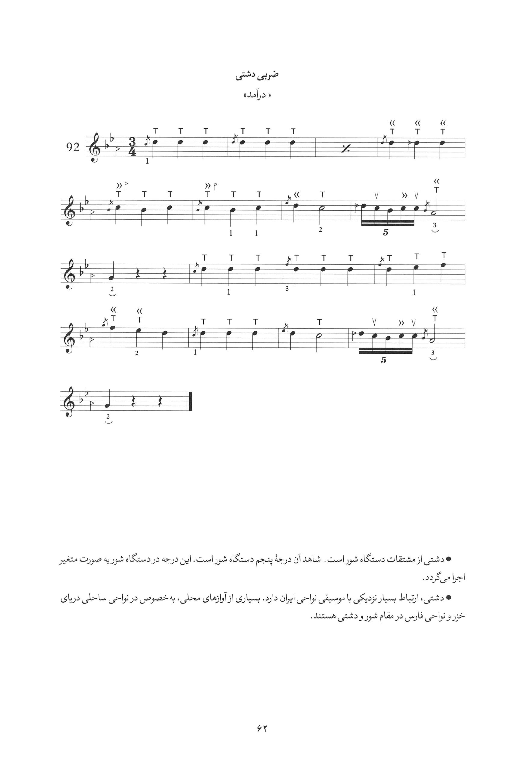 ۹۲. شربی درامد دشتی کتاب آموزش مقدماتی تار و سه تار بر اساس ردیف دستگاهی نبی احمدی