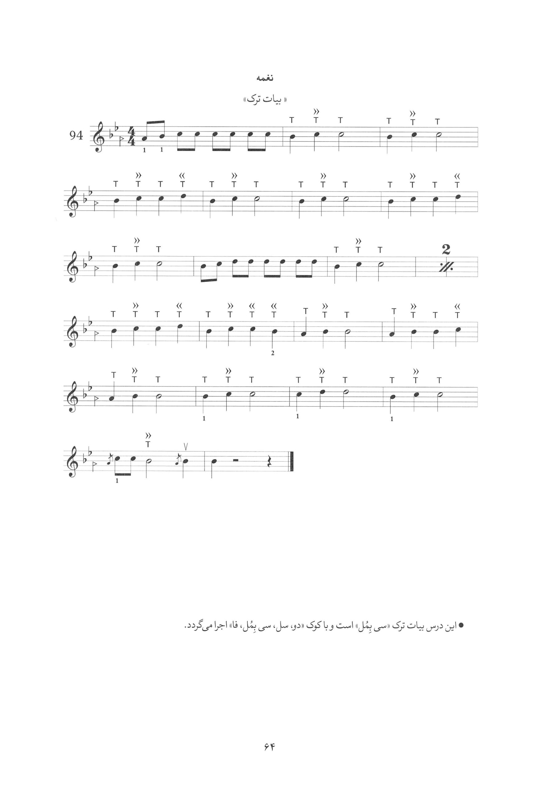 ۹۴. نغمه بیات ترک کتاب آموزش مقدماتی تار و سه تار بر اساس ردیف دستگاهی نبی احمدی