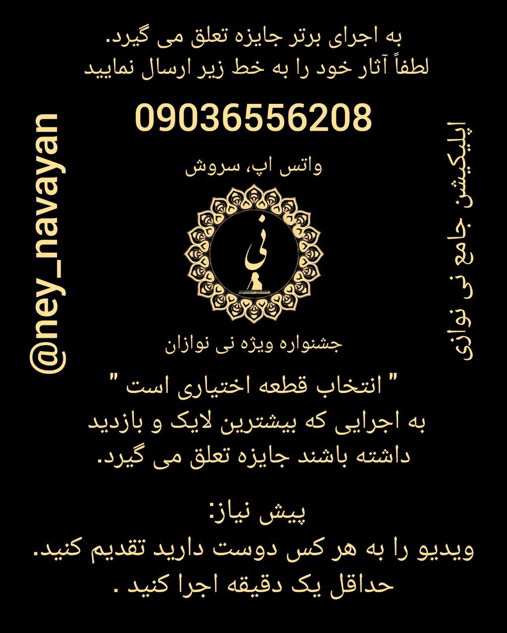 مسابقه نی نوازی با حضور بیش از یکصد نوازننده نی توسط اپلیکیشن نینوایان اجرا گردید و در صفحه اینستاگرام به نفرات برتر اعلام گردید .